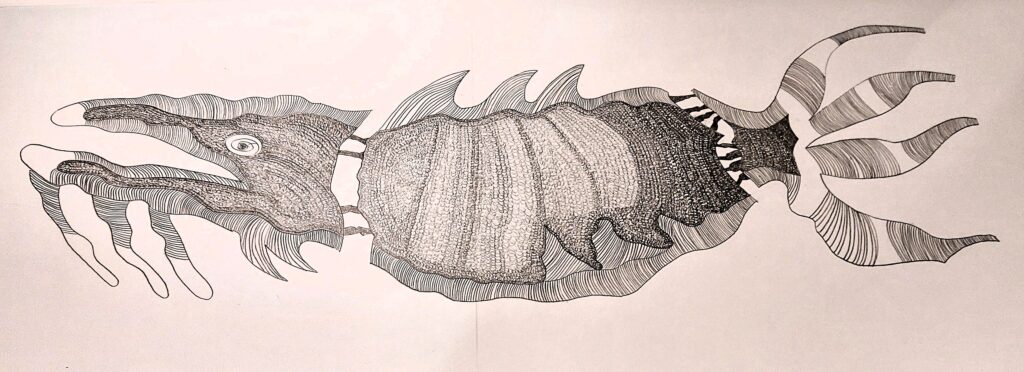 Recently I started to draw with a pencil on transparent pergamentpaper. After many years of working with the material glass, in design and artworks, I decided in the covidperiod and through illness start drawing again as beginner. I have always loved the nature, especially the Icelandic elements of gletchers, waterfalls and the sea. Now the climachange and the pollution is changing the acuaculture there.