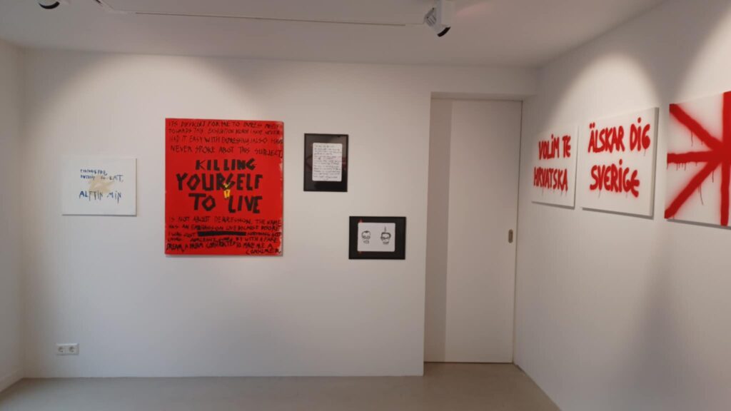 Sýning Núma er á vesturvegg Mjólkurbúðarinnar og ber titilinn KILLING YOURSELF TO LIVE og þar gefur að líta málverk sem unnin eru nýlega.